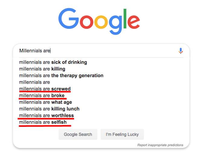 If you type “millennials” into your Google search bar, “screwed,” “worthless,” “selfish,” and many other not-so-flattering adjectives will probably follow your query. The question is: do these descriptions jibe with the facts?